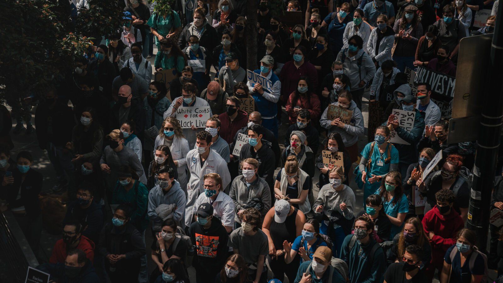 - Anti-racism protesters segregated themselves by race. Source